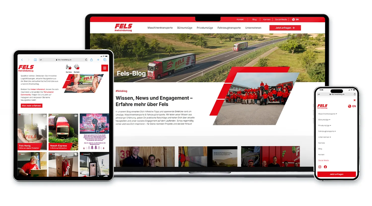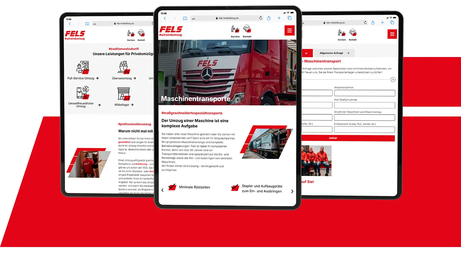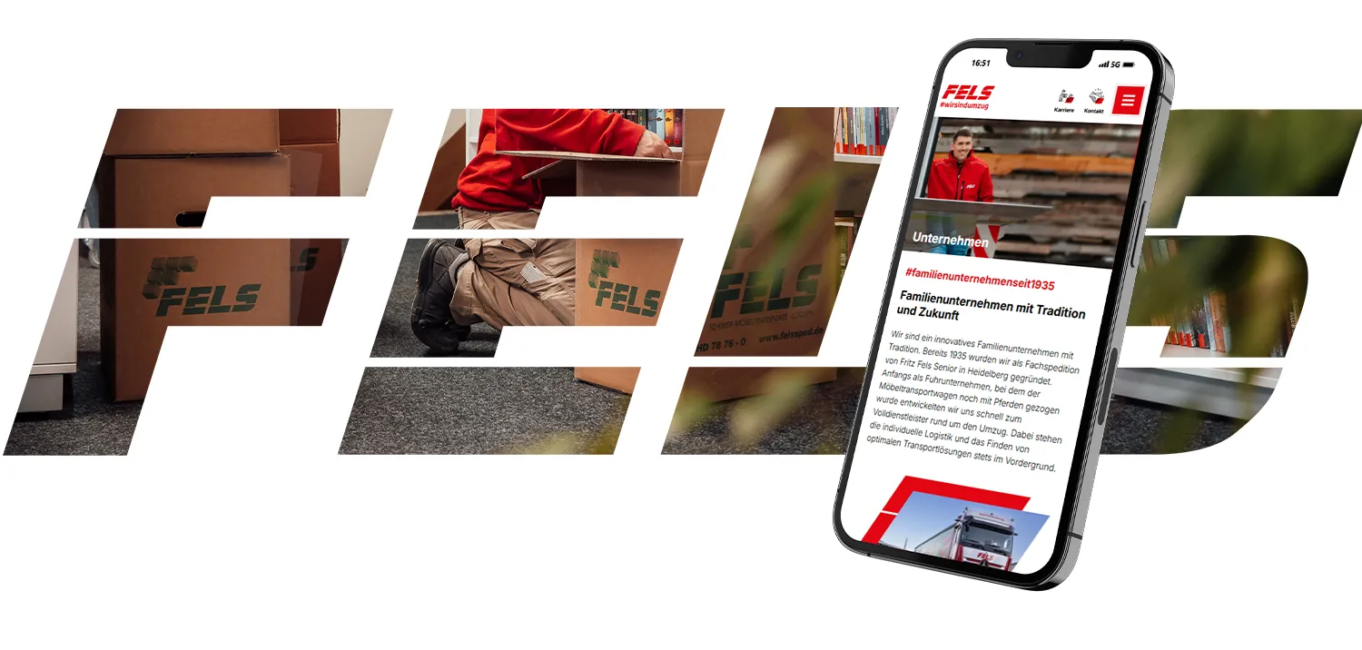 Die Fritz Fels GmbH aus Heidelberg ist ein traditionsreiches Familienunternehmen für Umzüge, Transporte und Logistiklösungen. Mit dem Relaunch der Corporate Website für Fels verfolgt das Unternehmen das Ziel, seine Marke digital zu modernisieren und den hohen Serviceanspruch auch online erlebbar zu machen. Seit 1935 steht Fels für Zuverlässigkeit, Qualität und regionale Verbundenheit, Werte, die im neuen digitalen Markenauftritt konsequent fortgeführt und gezielt gestärkt werden.